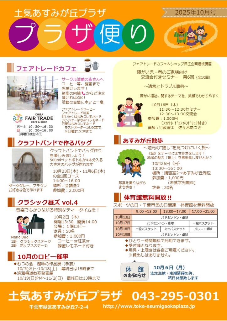 イベントの案内やニュース・トピックス等が掲載された「土気あすみが丘プラザだより」は、プラザと利用者の皆さまを結ぶコミュニケーションツールです。 プラザ便りPDF版はこちらをご覧ください。⇒プラザだより.pdf 続きを読む: プラザだより ▷2022年9月号PDFファイル ▷2022年8月号PDFファイル ▷2022年7月号PDFファイル バックナンバー ▷2020年度発行 ▷2019年度発行 ▷2018年度発行 ▷2017年度発行 ▷2016年度発行