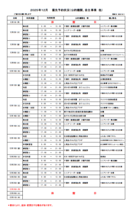 優先予約状況のご案内(2025.10.1更新)新着!!