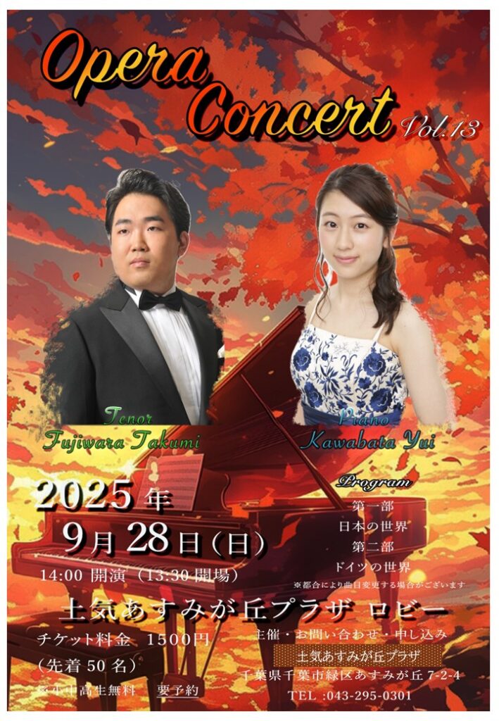 大変申し訳ありませんが、出演者の体調不良により「オペラコンサート」は中止とさせて頂きます。